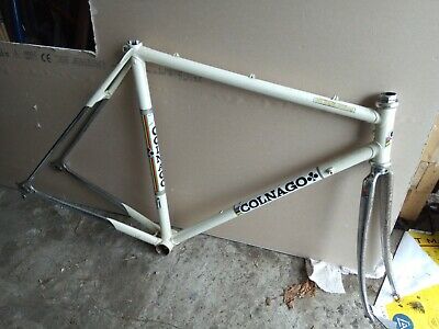 Ciocc 80’s Italian Racing / Road Bike frame. 21.5″ Relisted as last person hadn’t realised collection was from near Bristol! Please Note: Despite the Colnago stickers on this frame, it is made by CIOCC. Still Italian and nice but not as desirable as Colnago. I have no idea why someone put the wrong stickers on!This frame was given to me about ten years ago with a stuck seat post. I had a go at gently hacksawing it out in pieces after everything else had failed but unfortunately didn’t realise that the side of the down tube was moving not the piece of chiselled off alloy seat post. So it’s on ebay in case anyone wants a real project! I didn’t have the heart to take it to the tip.About the frame:21.5″ or approx. 55cm from center of bb to top of downtube lug.2.2 -2.5 kg. I only had a luggage scale which didn’t give me exact grams.Tubing: Front forks have Columbus sticker. Not sure about frame but i’m sure the weight would indicate the type of tubing from this era.Damage – Please look at photos carefullySeatpost still stuck in frame!Chrome is rusty, damage to down tube with screwdriver (ouch) and some minor damage to the shape of the clover leaf thing on the underside of the bottom bracket. Frame looks true but I wouldn’t know how to check other than looking. Clearly I am not expecting to get much for this make sure you are happy with what you are bidding for. No returns.If your local and want to have a look that’s fine by me.Collection or postage if you organise it yourself. UPS wanted £35 when I looked but happy to pack it up if you find something cheaper and pay the cost of delivery and collection etc