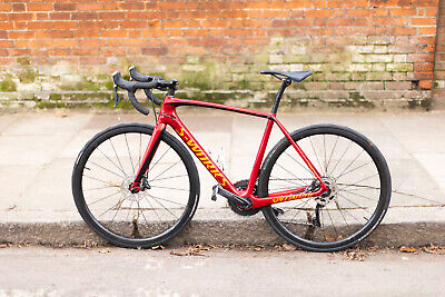 S Works Disc 54cm DI2 Tarmac SL5 FACT 11R Carbon Fibre road racing bike in beautiful deep red colour.