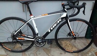 2015 Trek Domane 4.3 Disc brake road racing bike. Barely used, approx 100 miles. Virtually new condition. A great saving of over £1,000 off new price of £1,80052cm frame, suit approx 5’4 to 5’8 height range.No postage offered, it’s Collection only from Sutton, Surrey, and payment by cash on collection only. Nice spec bike, everything you want in an endurance road bike: full carbon frame, hydraulic disc brakes, great Shimano 105 11 speed groupset, isospeed decoupler for added comfort, wheels with 12mm bolt through, 11-32 cassette to get you up any hill. Fast, comfortable and stable, ideal for long days out / sportives / club rides.Trek’s Domane 4.3 Disc offers unmatched ride quality, comfort and quickness. This full carbon road machine is graced with race-winning Trek technology like IsoSpeed and an endurance geometry to make it a true ride-all-day rocket. It masters long, epic rides with ease while delivering unrivaled speed and bump compliance. The 4.3 rolls on a precision-shifting Shimano 105 drivetrain with compact cranks and 11-32 cassette for easier climbing. Through axles front and rear give you serious corner-carving ability, and the hydraulic discs deliver impressive stopping power. Plus, you get quality Bontrager components including aluminum wheels, bar and stem, and a carbon seat post. Uncompromisingly fast, confidently stable, sublimely comfortable, the Domane 4.3 Disc has it all!Frame400 Series OCLV Carbon, IsoSpeed, disc balanced post mount, 142×12 Closed Convert dropout, vanishing mudguard mounts, E2, BB90, DuoTrap compatible, 3S chain keeperForkTrek IsoSpeed carbon disc, E2, 15mm thru-axleFront DerailleurShimano 105, braze-onRear DerailleurShimano 105Number of Gears22ShiftersShimano 105, 11 speedChain setShimano RS500Chain rings50/34TBottom BracketBB90CassetteShimano 105 11-32, 11 speedChainShimano 105PedalsNot suppliedBrakesetTRP HY/RD cable/hydro disc, 160mm rotorsHandlebarsBontrager Race Blade VR-C, 31.8mmStemBontrager Race Lite, 31.8mm, 7 degreeHeadsetIntegrated, cartridge bearings, sealed, 1-1/8″ top, 1.5″ bottomGripsBontrager gel cork tapeRimsBontrager Tubeless Ready discFront HubBontrager alloy centrelock disc 15mmRear HubBontrager alloy Center Lock disc 142x12Front TyreBontrager R1 Hard-Case Lite, 700x25cRear TyreBontrager R1 Hard-Case Lite, 700x25cSaddleBontrager Paradigm 1SeatpostBontrager Carbon, 2-bolt head, 27.2mm, 8mm offsetTERMS:CASH ON COLLECTION ONLY. COLLECTION ONLY FROM SUTTON, SURREY / SW LONDON, WITHIN 7 DAYS. DO NOT PAY BY PAYPAL, IT IS NOT ACCEPTED FOR COLLECTED ITEMS, AND IF YOU DO IT WILL BE REFUNDED MINUS THE CONSIDERABLE FEES PAYPAL WILL HAVE DEDUCTED. IT’S CASH PAYMENT ONLY.